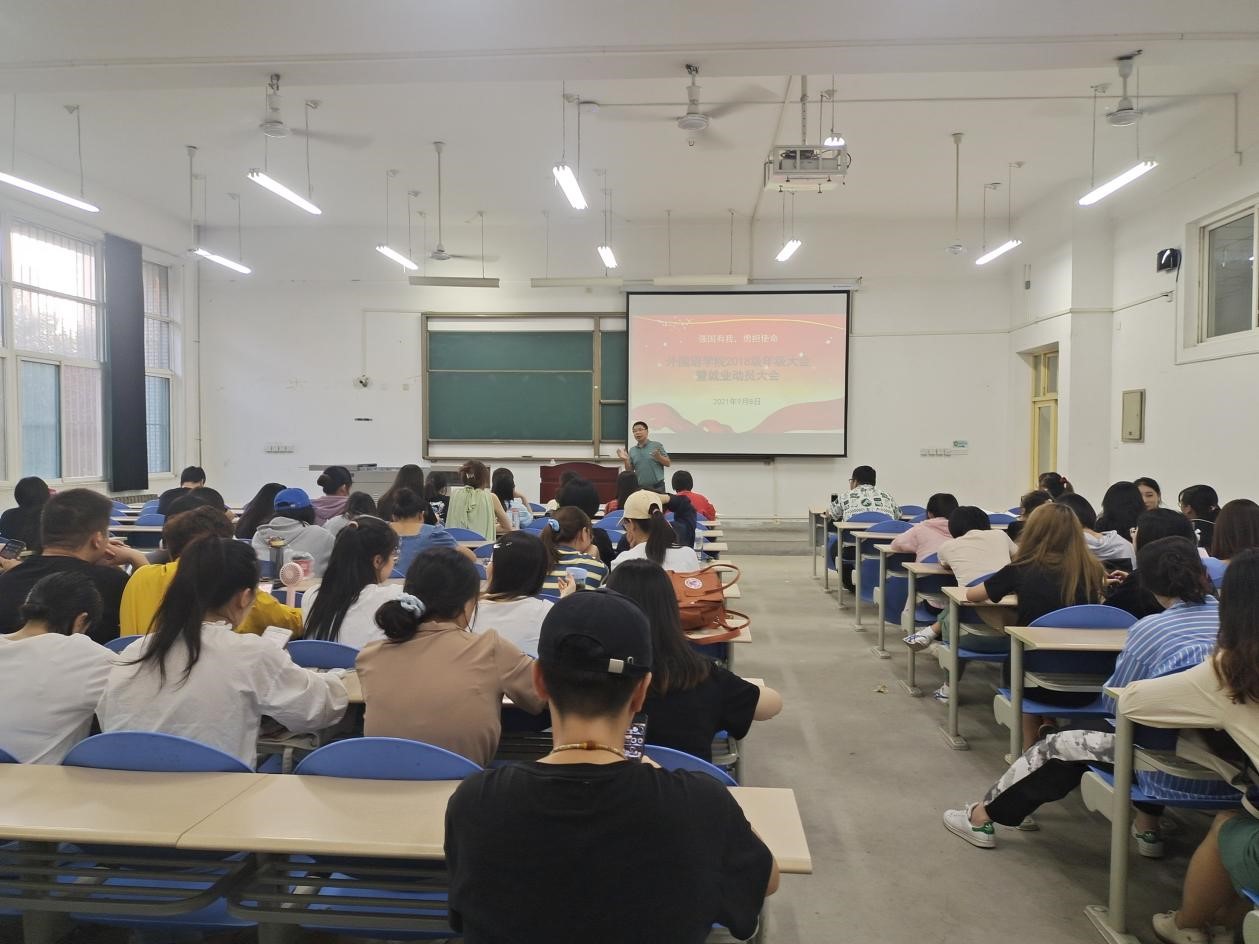 在鄠邑校区B105、B104召开2018级年级大会暨就业动员会。学院党委副书记王业青、2018级辅导员陈浩和全体应届毕业生参加会议。