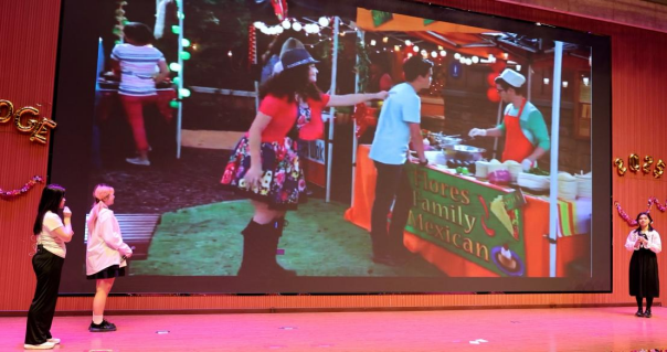 学子们以英语为舟,破浪前行,整个舞台成为了文化交流的璀璨窗口。经济管理学院张云喆的深情独唱《Strawberries & Cigarettes》和电子工程学院马翔宇献唱的迪士尼经典《Reflection》尽显声音魅力;新能源学院史沐涵演绎的《Tough Love》更是将情感与语言技巧融为一体;计算机学院、地球科学与工程学院带来的《长发公主》《狗狗博客》及理学院呈现的《奇迹男孩》配音秀,精准捕捉角色神韵,展现了卓越的语音模仿与表达力;人文学院张艺菲与新能源学院高天乐等联袂献演的传统《嫦娥奔月》皮影戏,光影流转间流淌着东方神韵;石油工程学院施澜、李熠辉创新的《传说中的英语相声》,妙语连珠中架起中西幽默的桥梁;人文学院学子演绎的《武林外传》情景剧,则为经典注入国际化表达。歌曲串烧由来自石工、经管、电工、地科、计算机、材料、人文、化工、理学院、新能源、机械等11个学院的近100名学子共同完成,《Take me home》《Country Road》经典旋律响彻全场,气势恢宏,综合性大学的育人优势在此刻熠熠生辉。从台前的演员阵容到幕后的技术支撑,处处可见各个学院广泛参与的身影,每一个环节的紧密衔接,都是跨学院团队协作精神的胜利。