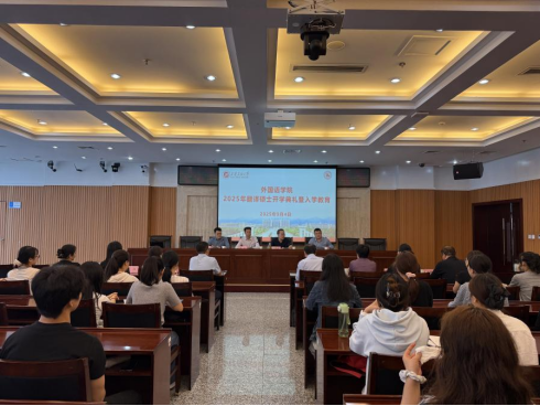 2025级翻译硕士研究生开学典礼暨入学专业教育在鄠邑校区图书馆第一会议室举行。学院党委书记张建高、副书记邱岭、副院长陈武、邓林、研究生导师以及25级翻译硕士研究生参加会议。会议由院党委副书记邱岭主持。